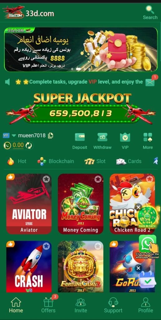 This app offers a mix of luck-based and skill-based games. You can play for fun, or you can play with real money to try your luck and earn. With secure systems and quick payments, the 33D APK aims to give a safe and enjoyable gaming experience.